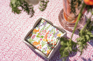 Add a hoppy little detail to the table, bar or powder room with napkins designed in flourishing spring prints & patterns.