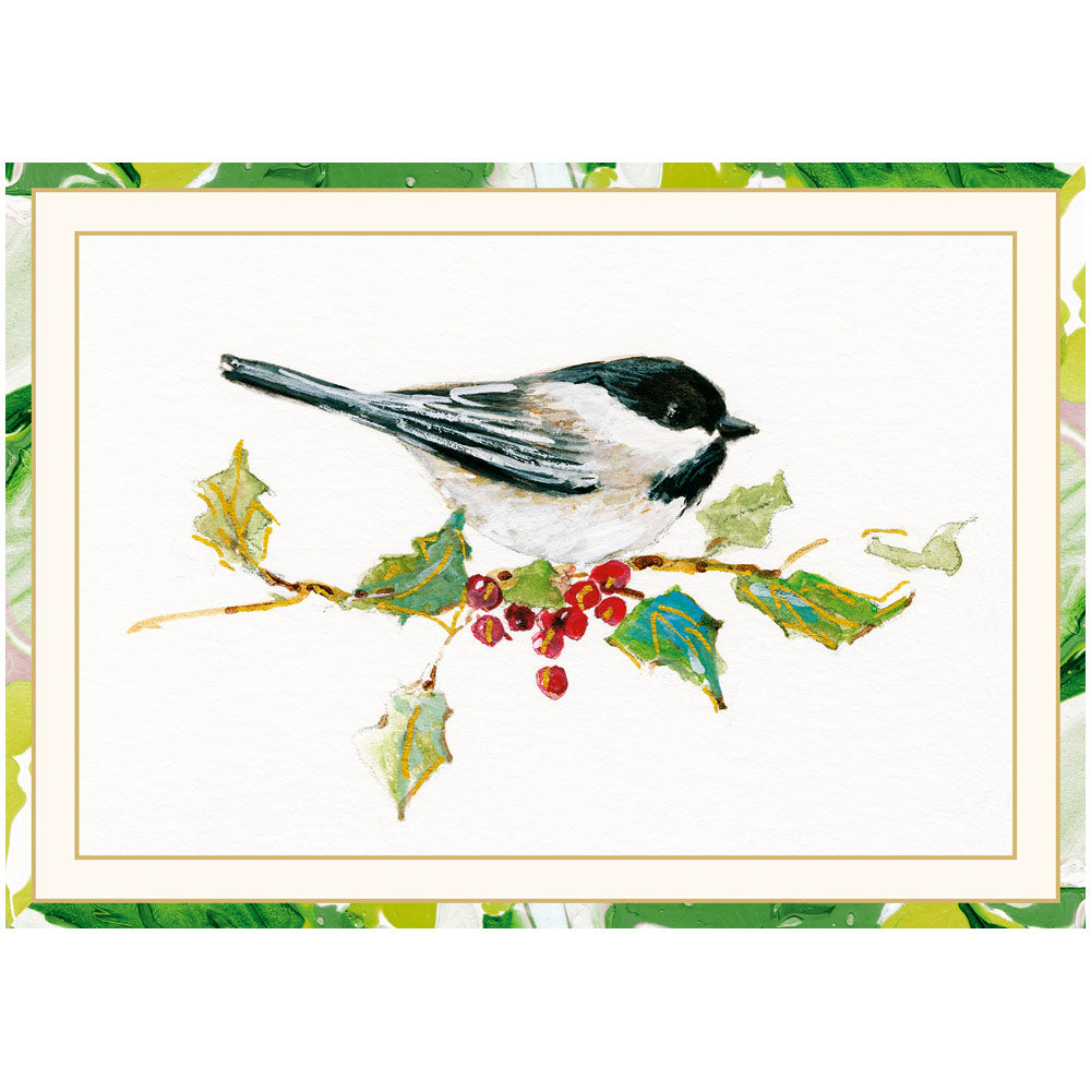 Chickadee And Holly Branch Small Boxed Christmas Cards - includes 15 cards & envelopes