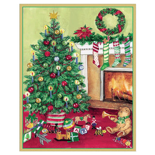 Tree with Fireplace Mini Christmas Cards in Cello Pack - 5 Cards & 5 Envelopes