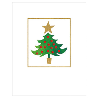 Green Tree & Gold Star Mini Embossed Boxed Christmas Cards - 10 Cards & 10 Envelopes