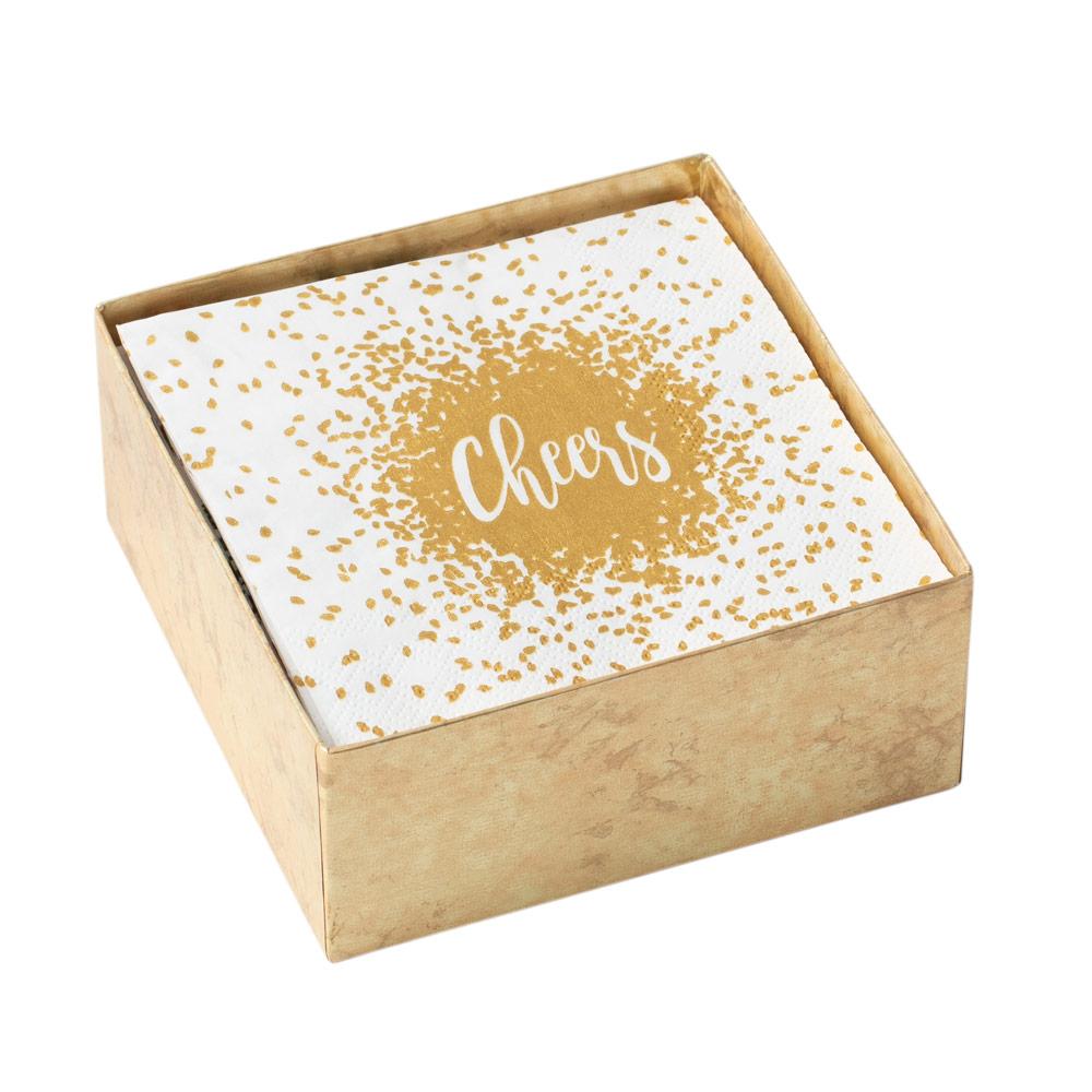 Cheers in Gold Boxed Paper Cocktail Napkins - 40 Per Box