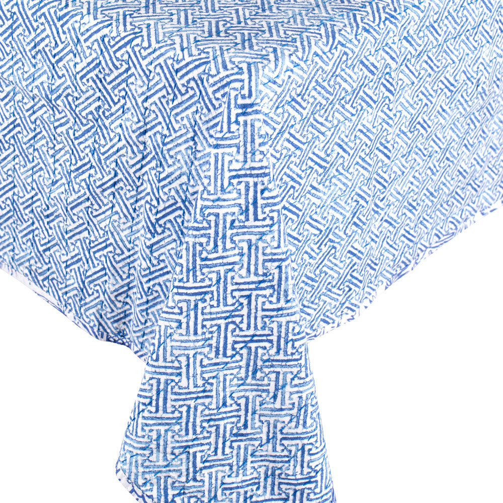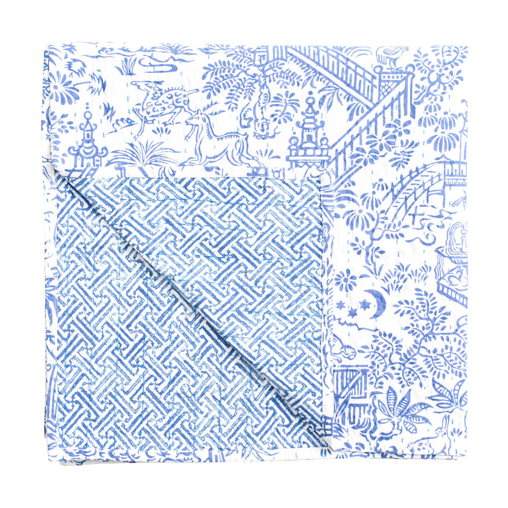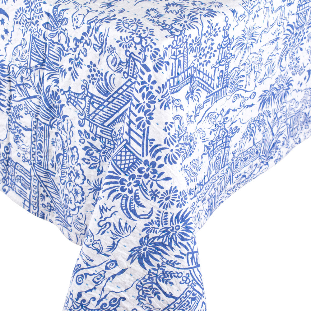 Pagoda Toile Blue&White-Reversible Fabc Cotton Tblcvr-70.5 X 70.5 Inch