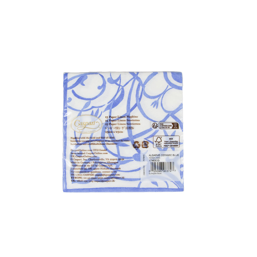Algarve Ceramic Blue-Paper Linen Napkin Airlaid Cocktail-15 In