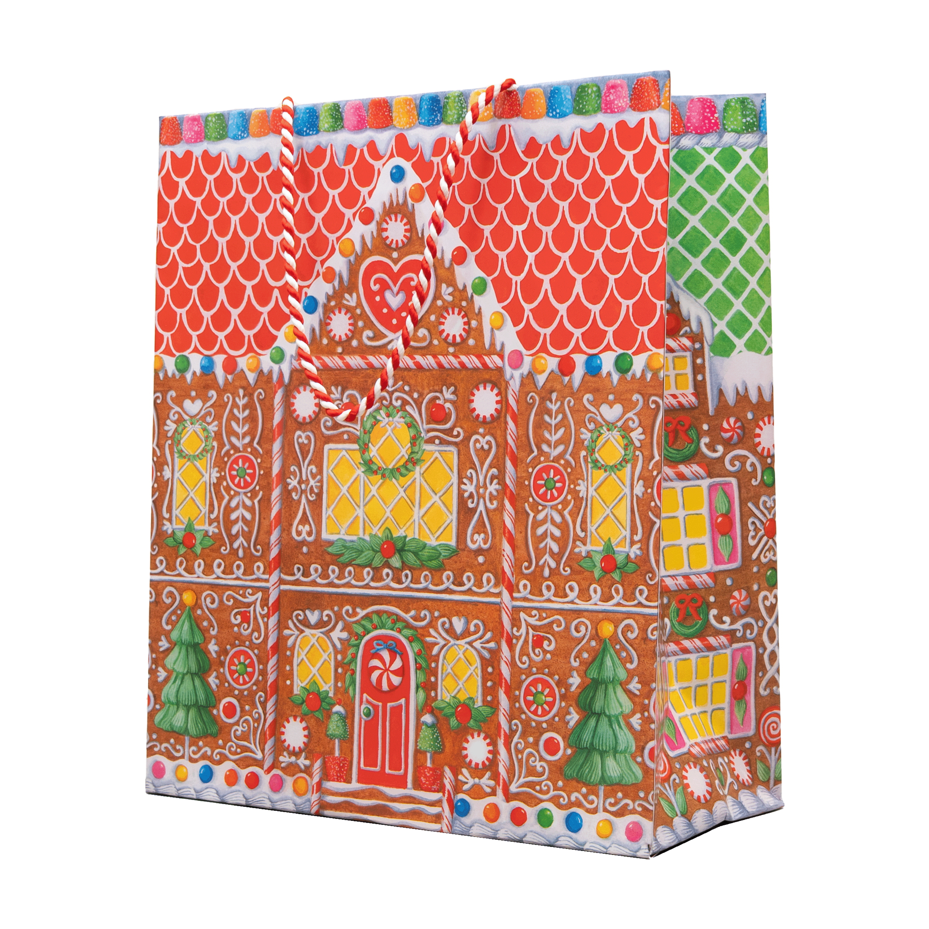 Gingerbread House Large Gift Bag 10"L x 4.75"W x 11.75"H - includes 1 bag