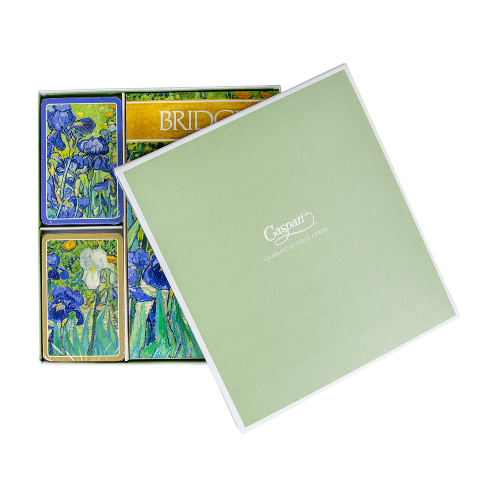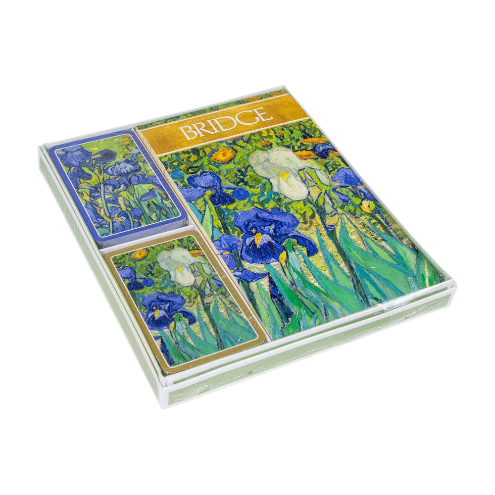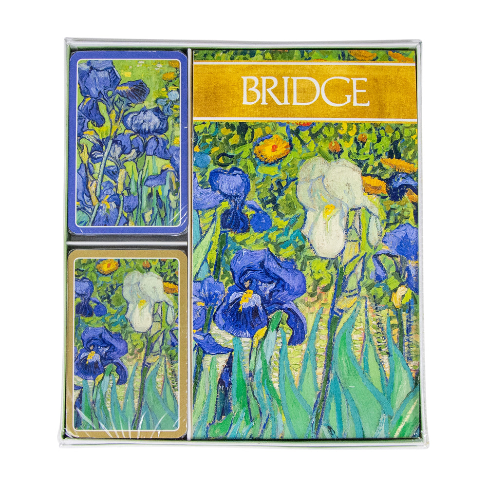 Bridge is a card game of advanced skill, which has origins dating back to the 19th and 20 centuries. Designed for group play, this game is played by four people in two pairs. A lovely accent for any room, bridge encourages conversation and friendly competition among new and old friends. Our beautiful Bridge Gift Sets feature artwork and designs created by artist and sourced from museums around the world. A perfect hostess, housewarming, or holiday gift, each set includes two sets of standard 52 card playing decks and two 39-page bridge score pads in coordinating designs. Each of the two card decks features a slightly different, but coordinating design. The entire set is packaged in a gold gift box making it easy to give.