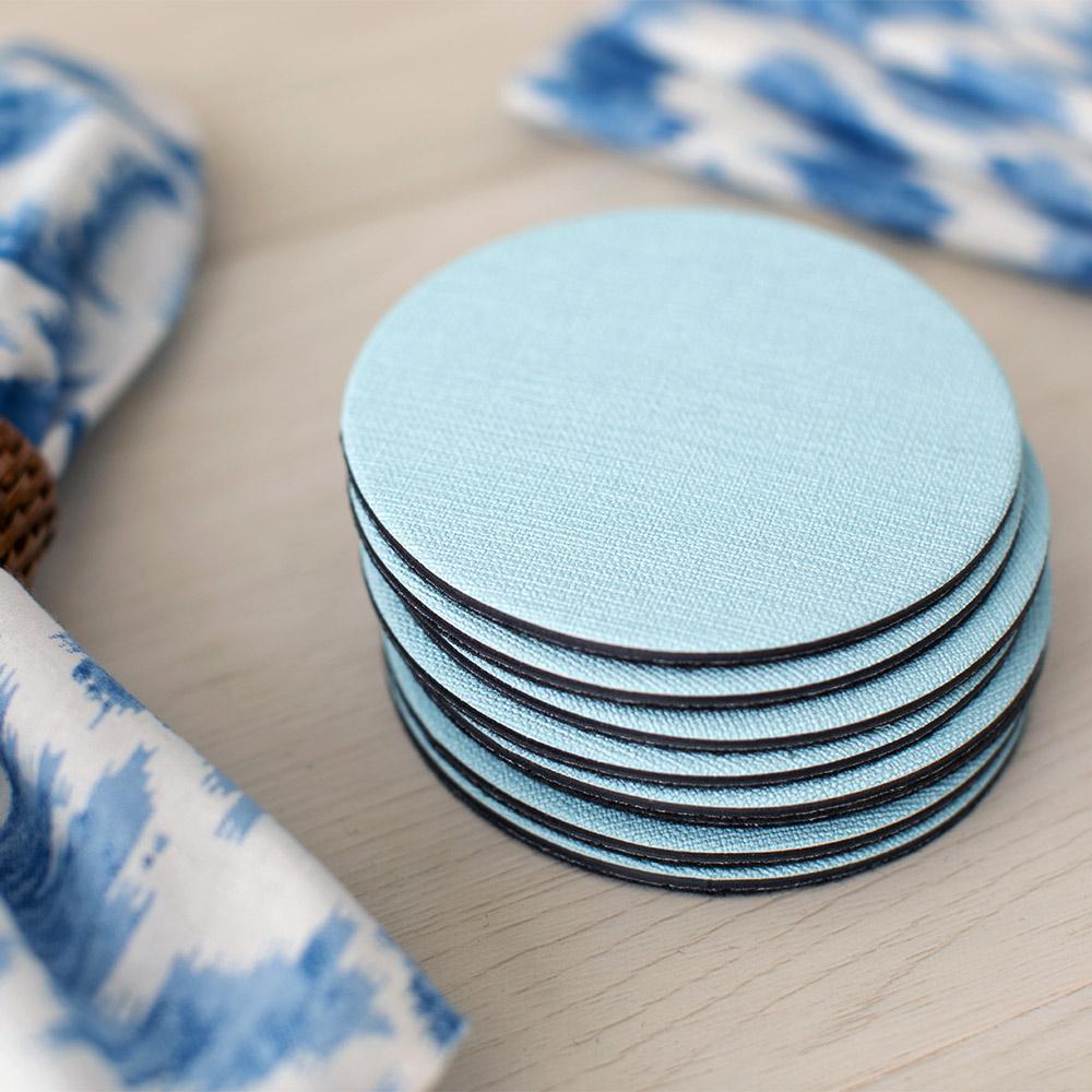 Classic Canvas Aqua Coaster Round 8-In Felt/Canvas