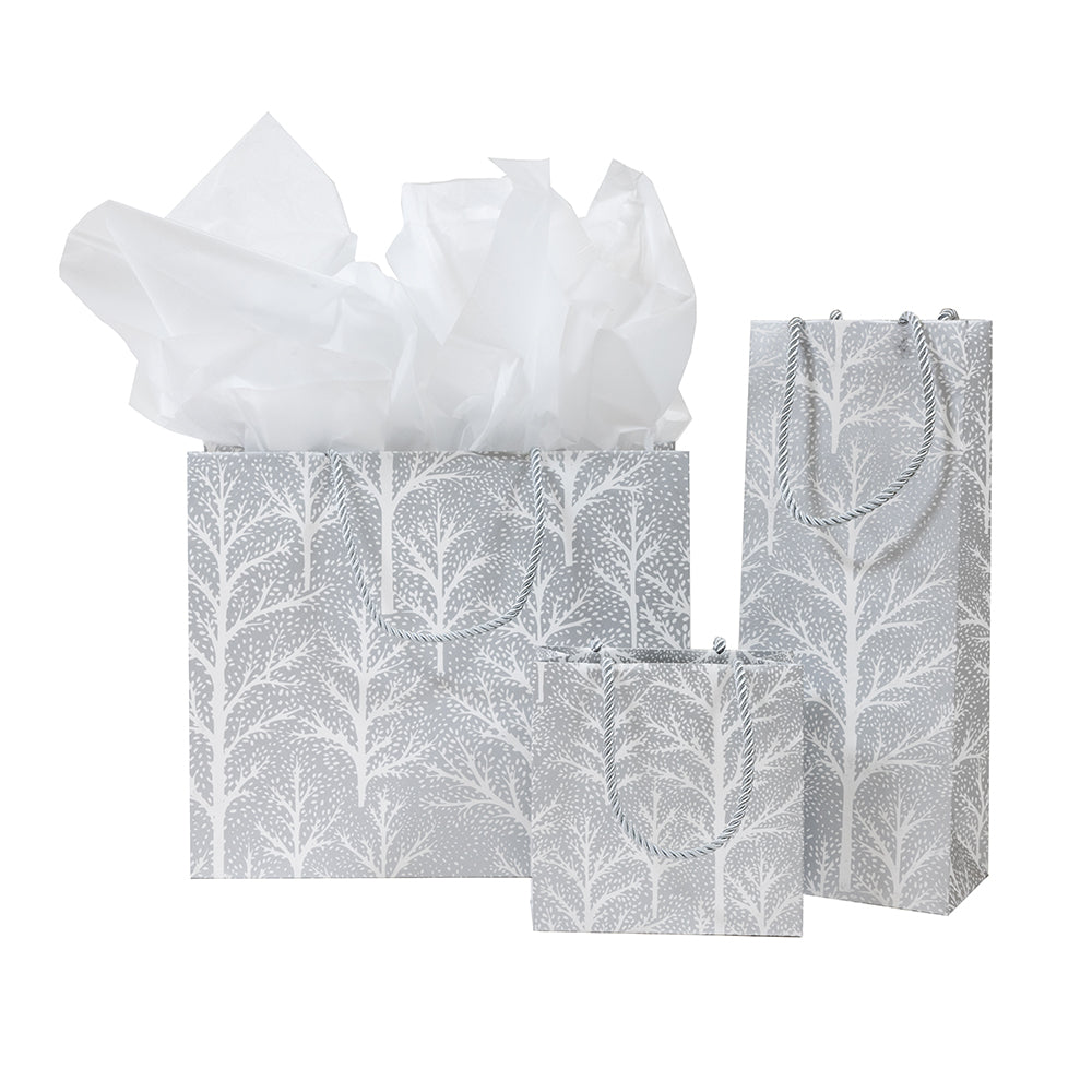 Winter Trees Silver Gift Bag Lg 11 3/4 X 4 3/4 X 10
