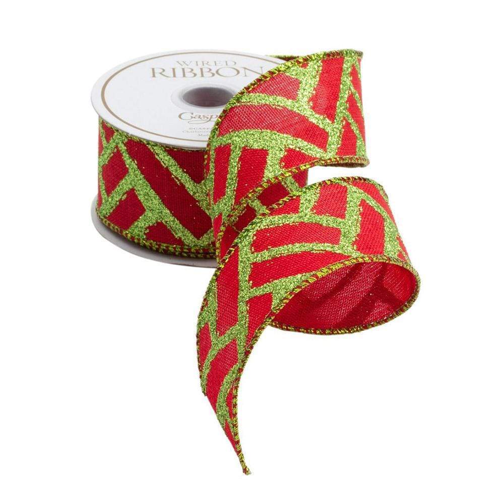 Fretwork Red/Green Ribbon Price Code F - 6 Yards