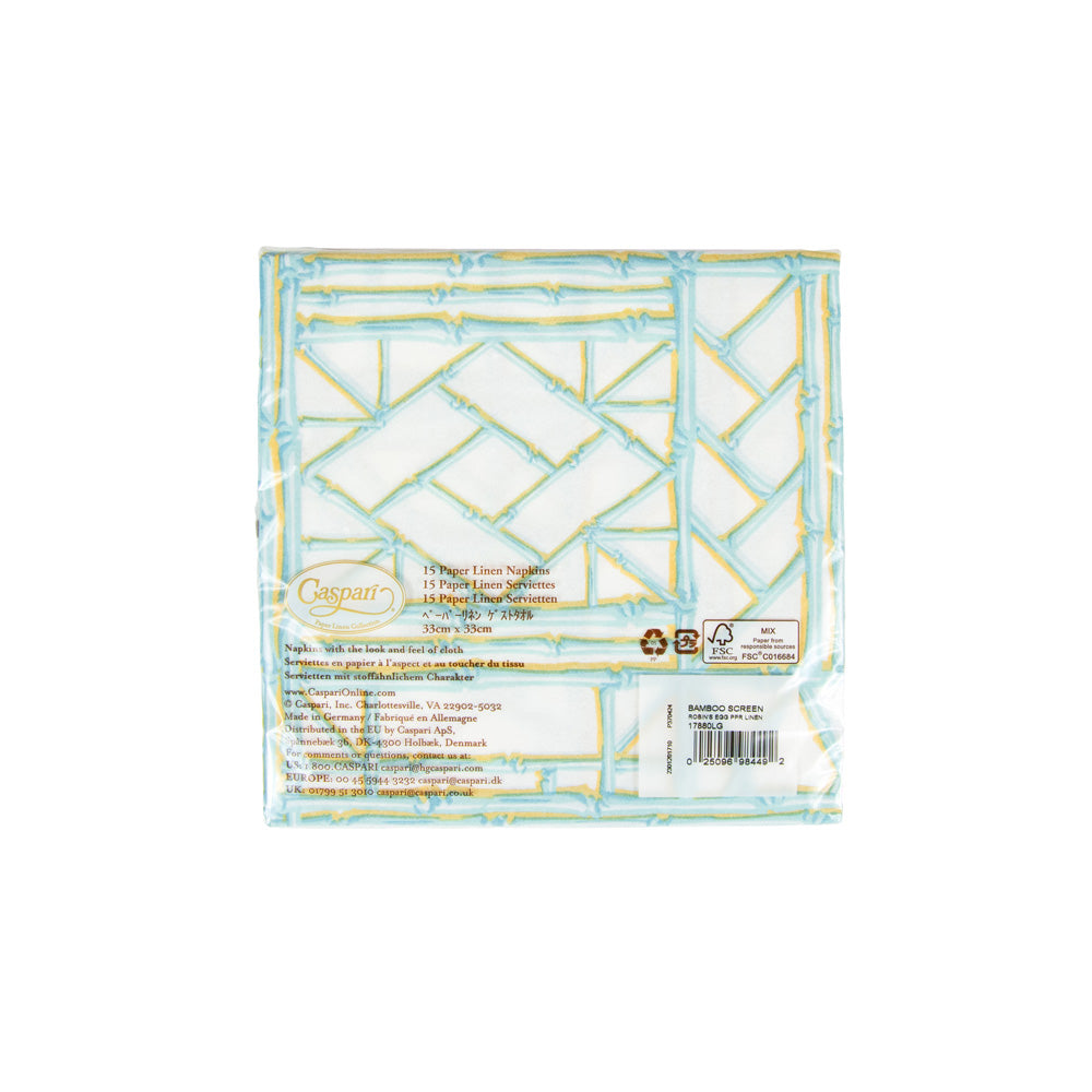 Bamboo Screen Robin's Egg-Ppr Linen Napkin Airlaid Luncheon-15 In