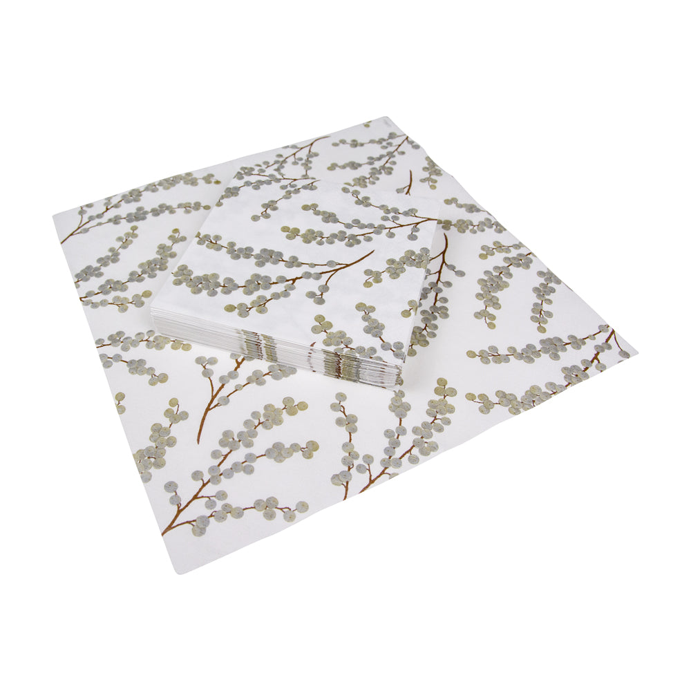 Berry Branches White/Silver Napkin Luncheon