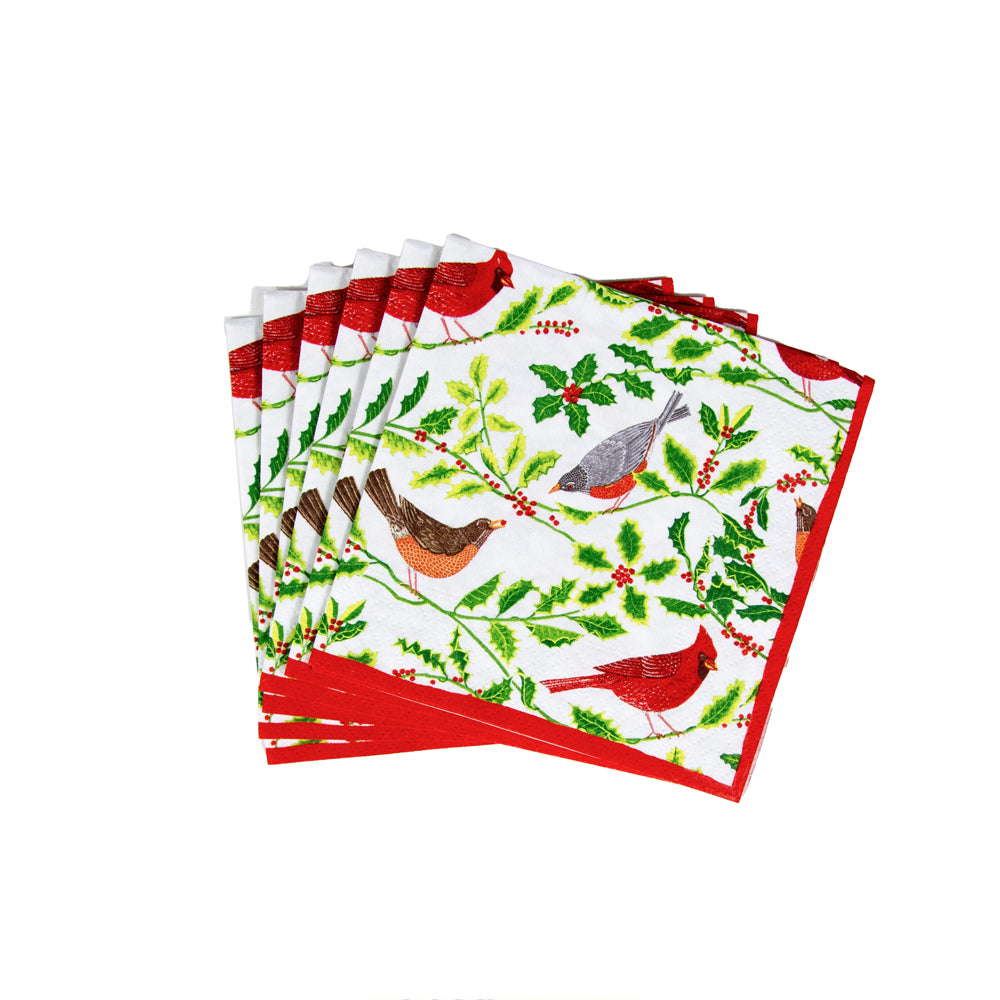 Songbirds And Holly White Napkin Box Cocktail - 40 per box