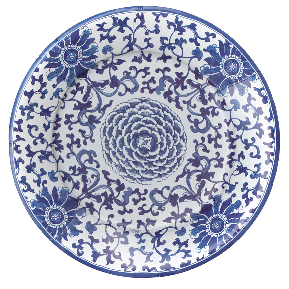 Indigo Garden Blue/White Paper Dinner Plates - package of 8