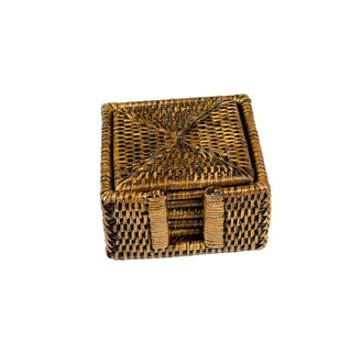 Rattan Square Coaster and Holder Set in Honey - Set of 6 Coasters and 1 Napkin Holder