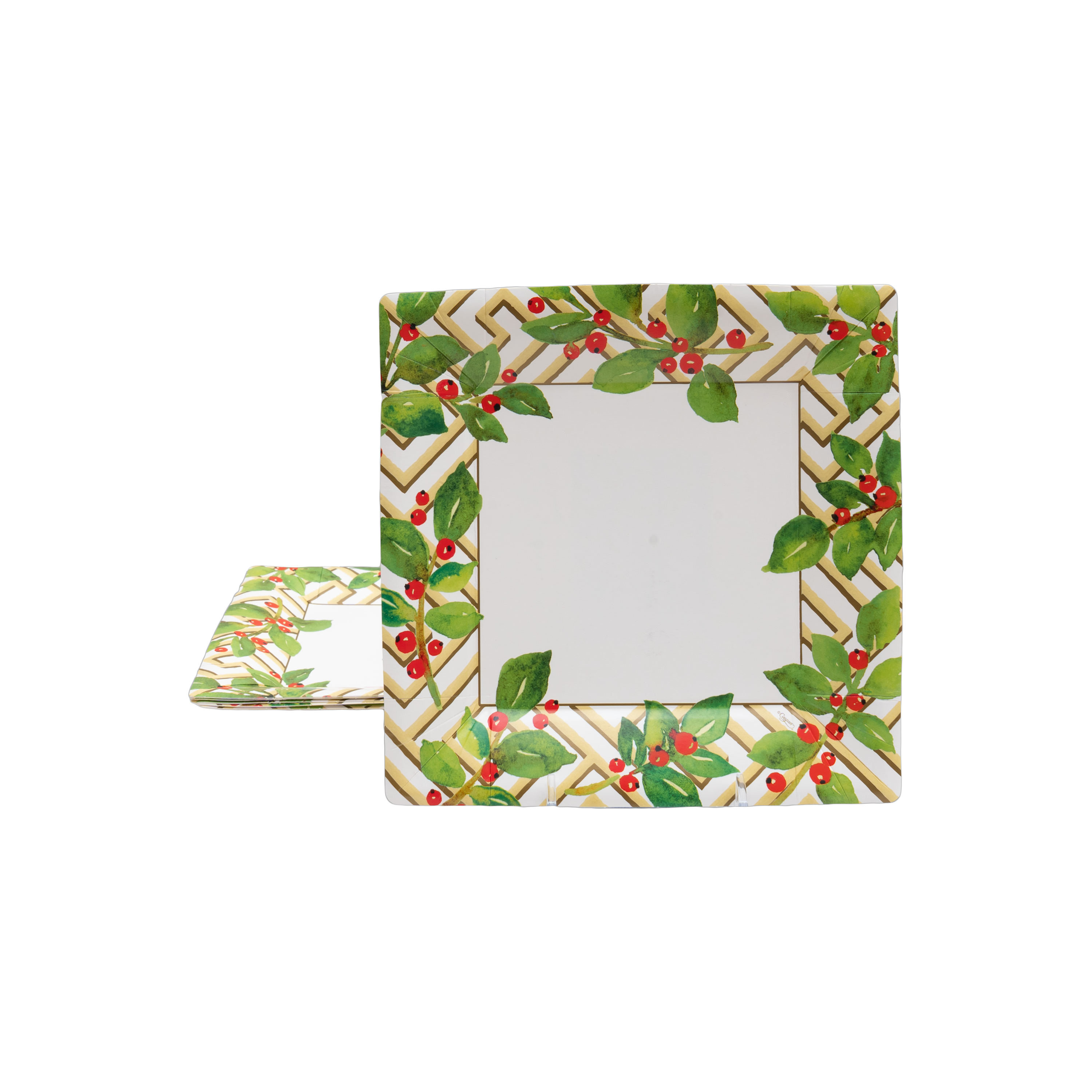 Holly And Fretwork White Square Paper Salad & Dessert Plates - includes 8 Paper Salad & Dessert Plates