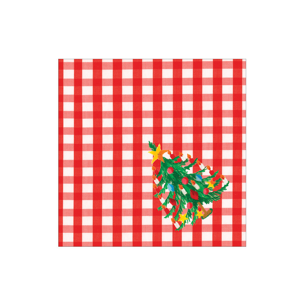 Christmas Tree Gingham Paper Cocktail Napkins - 40 Per Box