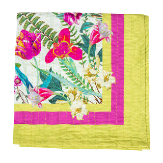 La Dolce Vita Kantha Quilt-Sage/Lav Fabc Cotton Tblcvr-70.5 X 70.5 Inch