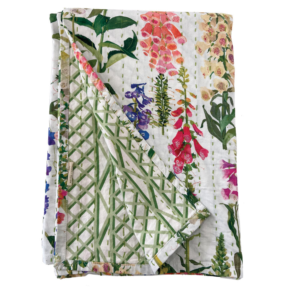 Each reversible Kantha quilt features the classic small, straight running stitch, or "kantha stitch", characterized by traditional Bengali embroidery. Perfect for the dining room, veranda or picnics on the lawn, the kantha works equally well as a tablecloth or a lightweight throw. The coordinating patterns printed on the reversible kantha quilt give you double the styling options!