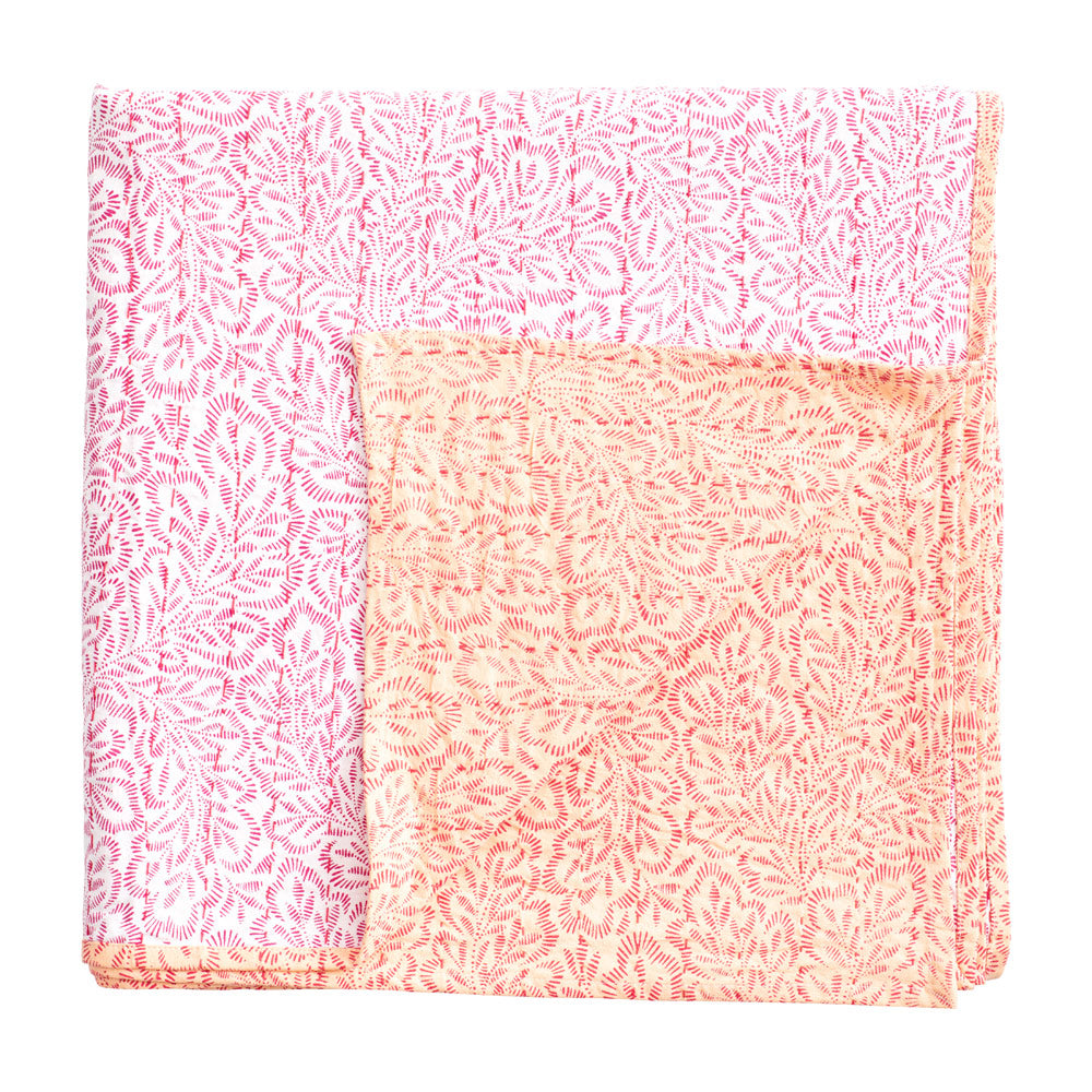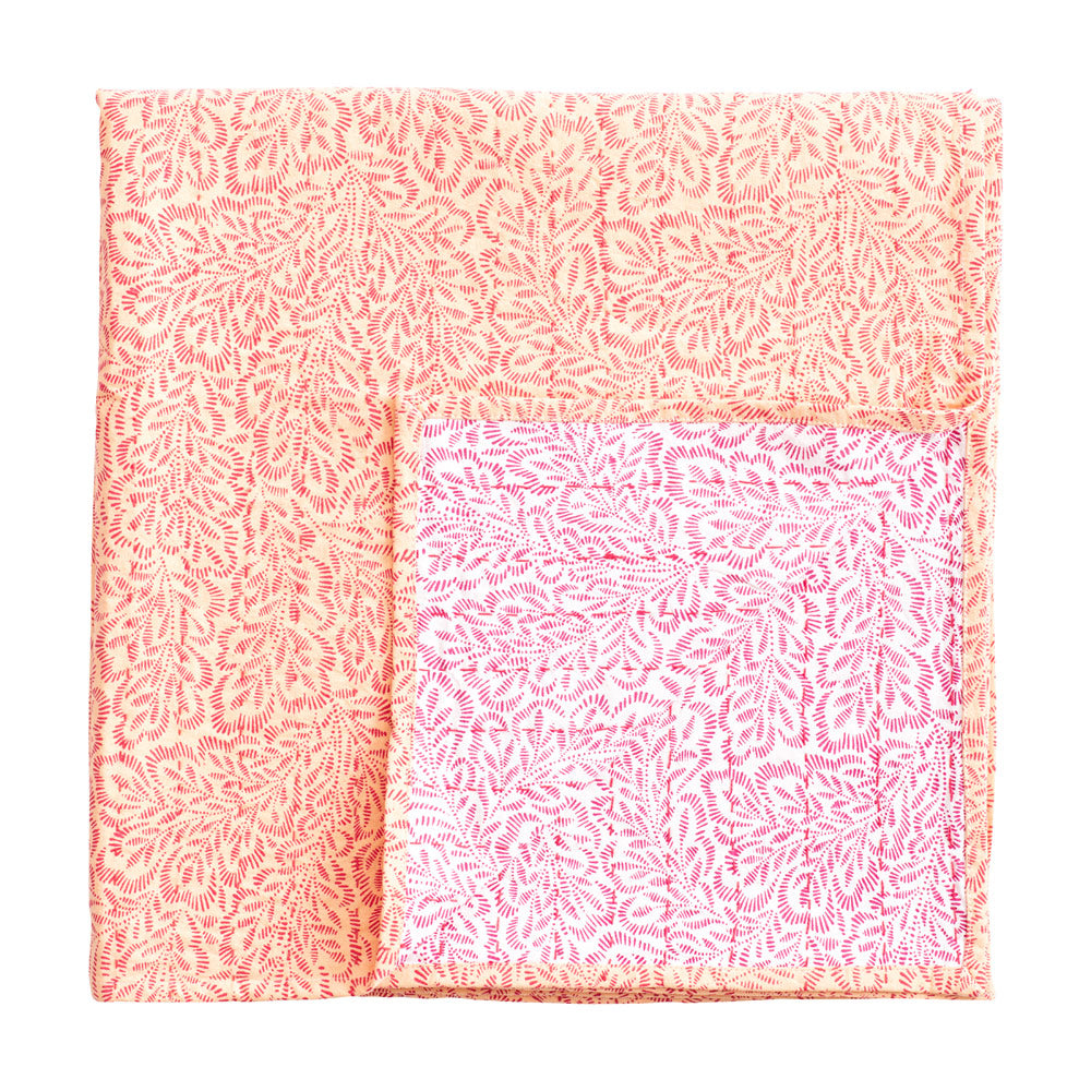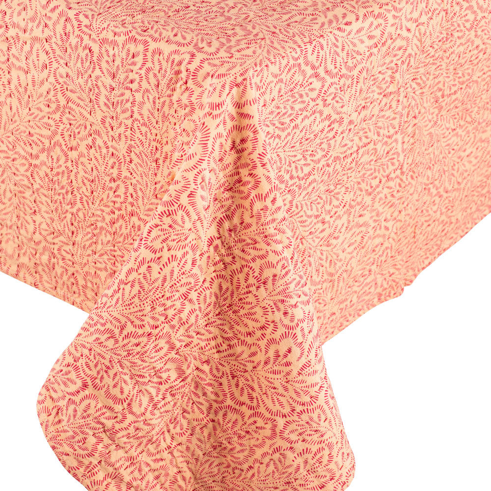 Block Print Leaves Fuchsia Reversib Labc Cotton Tblcvr-70.5 X 70.5 Inch