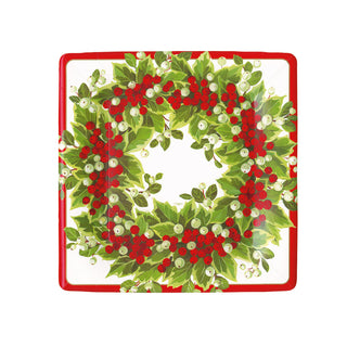 Holly And Berry Wreath Sq Salad/Dessert Plates Square