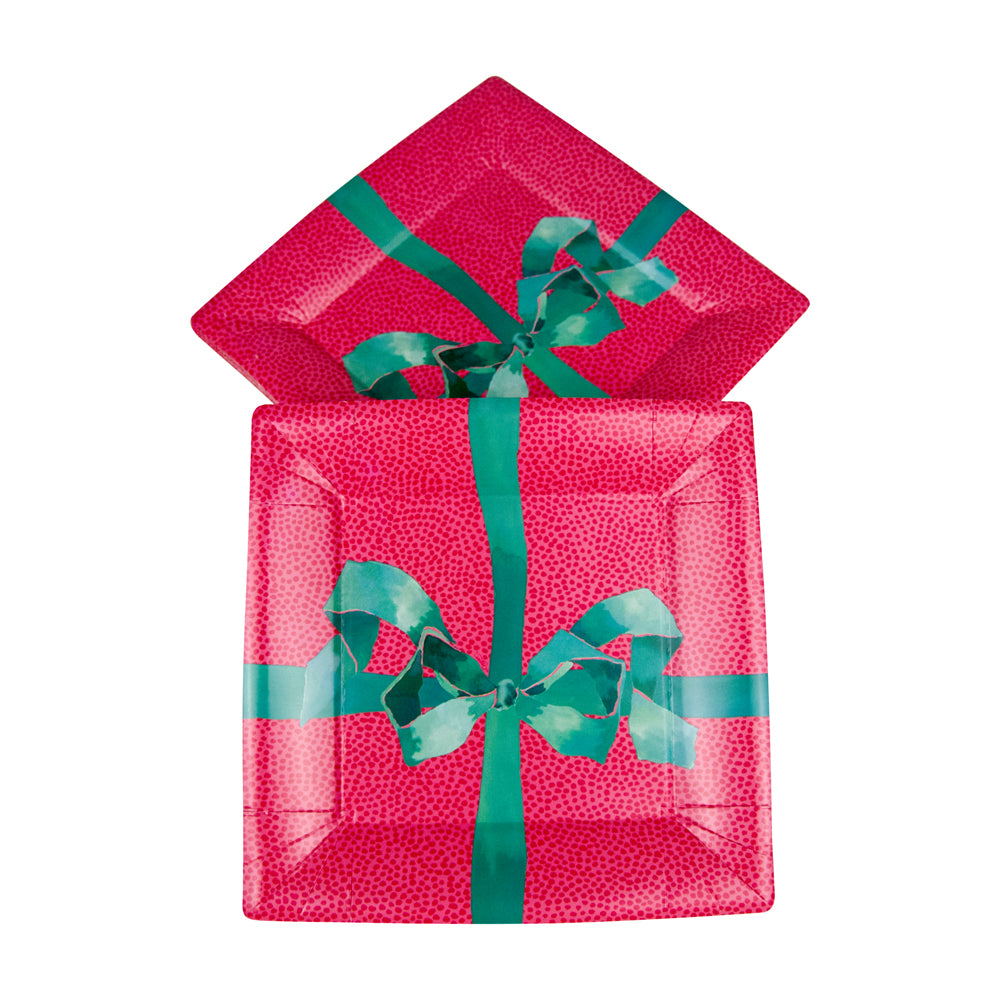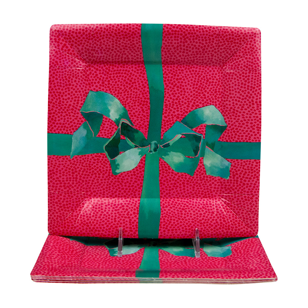 Tied With A Bow Red/Spruce Sq Salad/Dessert Plates Square