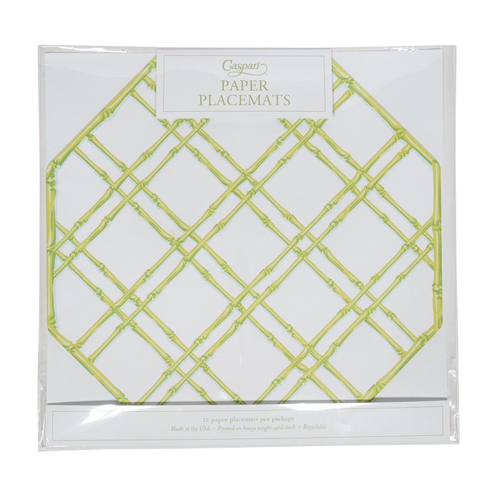 Bamboo Screen Moss Green Paper Placemats Octagon 12-In
