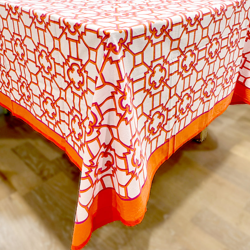 Garden Trellis Tablecover-Fuch/Oran Fabc Cotton Tblcvr-120X60